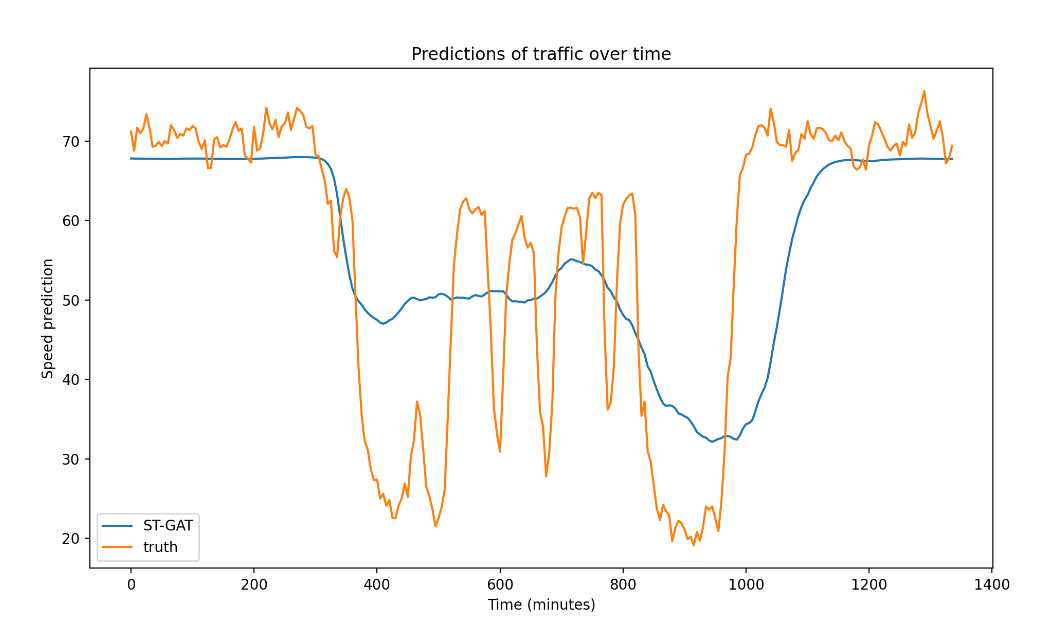 Furthermore, we make our implementation of the ST-GAT model available open source on Github. We hope this will be a valuable resource for trying out the GAT model at home, both for traffic prediction and other graph tasks that have both spatial and temporal features.
