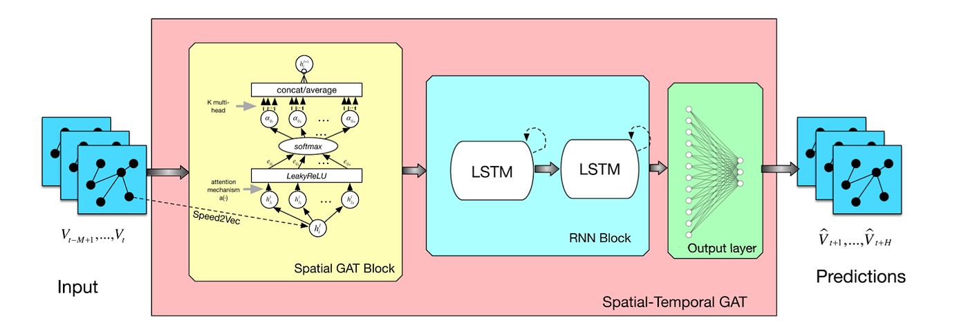 We consider the ST-GAT model for forecasting the average speed of traffic in a traffic network as presented by Zhang et al.