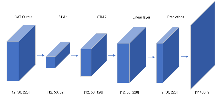 For further clarity, we provide a diagram of the training data as it passes from GAT output, through the RNN portion of the ST-GAT and through a linear layer.